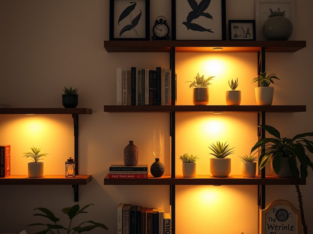 Małe oświetlenie dekoracyjne na półkach: jak dobrać proporcje i efekty dla przytulnej atmosfery